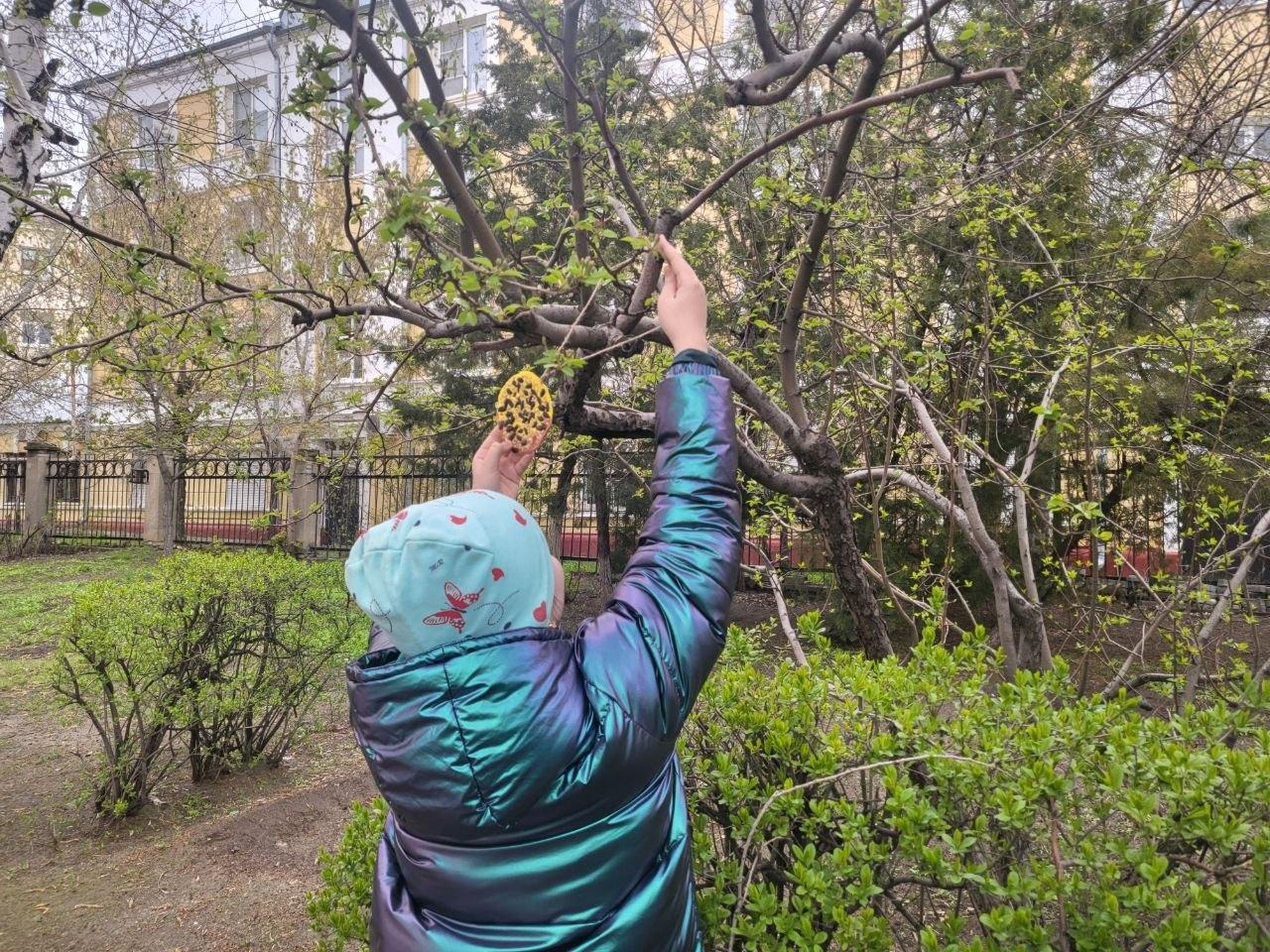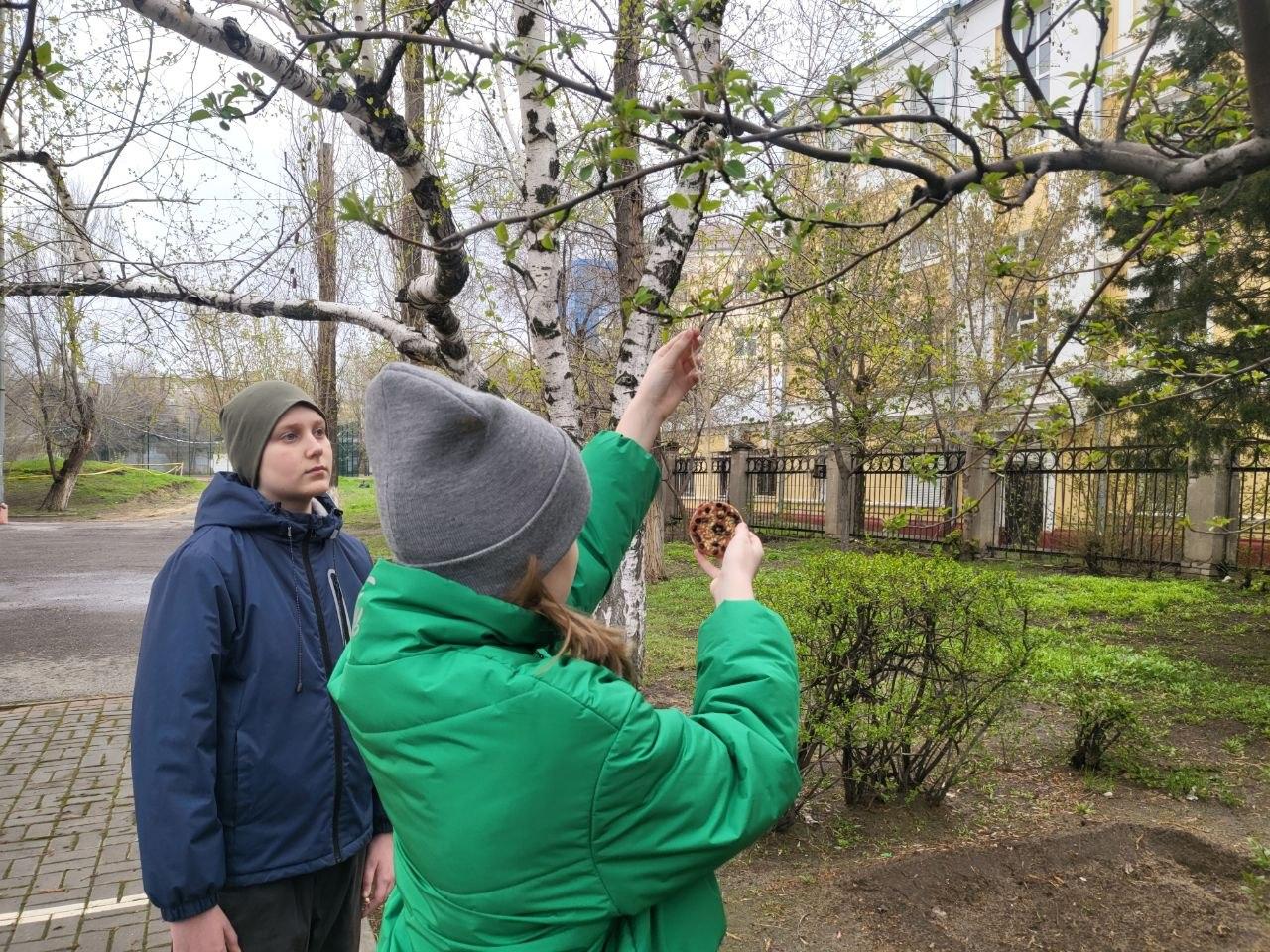 Пятиклассники разместили в ветках дерева готовые кружочки с угощением: осталось дождаться гостей. А пока одни птицы собираются, можно и угостить голубей, прилетевших прямо к ногам школьников!#ЧистаяСтрана #ВорошиловскоеМО #ЕР34 #Школа130